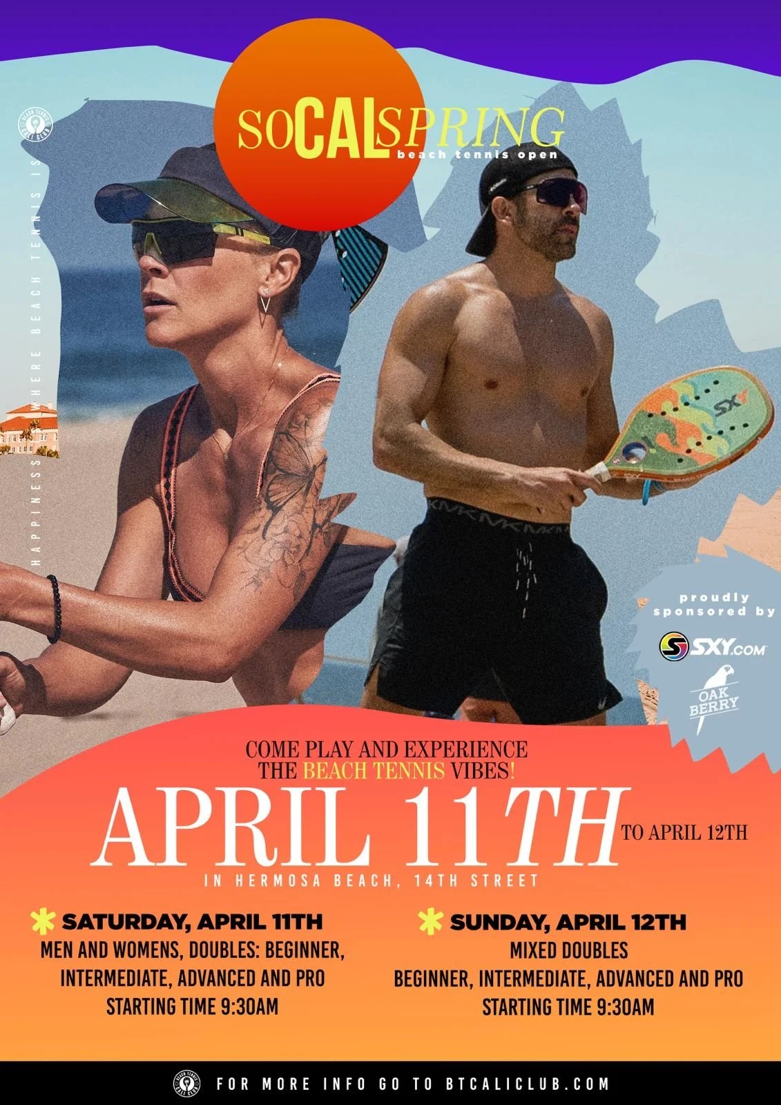BTCaliClub is hosting a tournament, the SoCal Spring Beach Tennis Open in Hermosa Beach on Sat-Sun, Apr 11-12, 2026